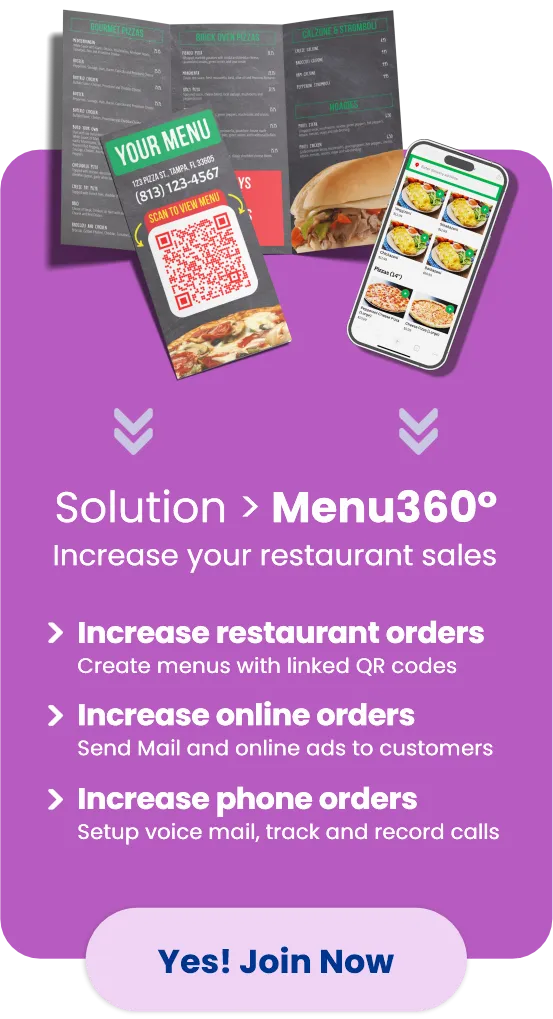 • Free takeout menus one-time per year ($380 value)*