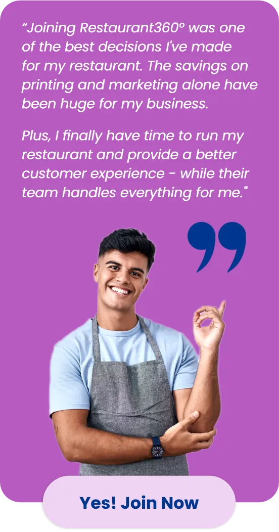 Restaurant360° is an annual membership program that gives restaurant owners and operators member-only savings on the promotional products and services they use most!